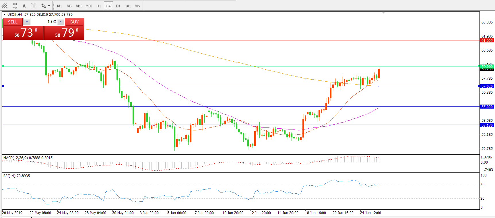 交易策略:在59.00之上看涨,目标61.00    64.00