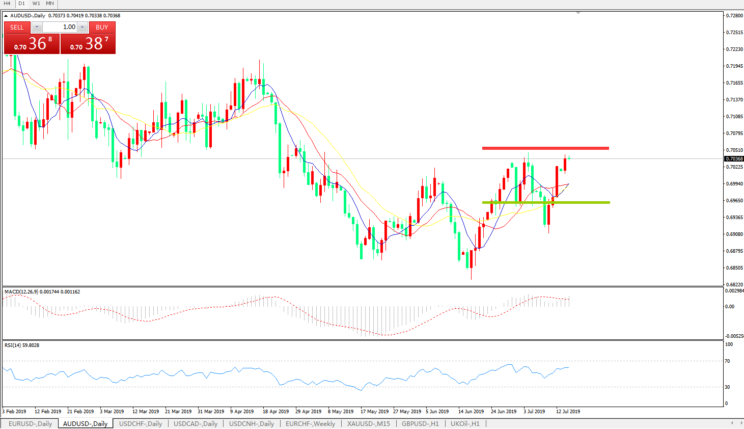 技术面简析:日图均线维持上攻态势,汇价延续攻势小幅上行,MACD在0轴上方运行且动能柱加速放量,RSI逐步走升,预计汇价存进一步上行空间,大概率汇价将突破前高试探0.7100附近压制。