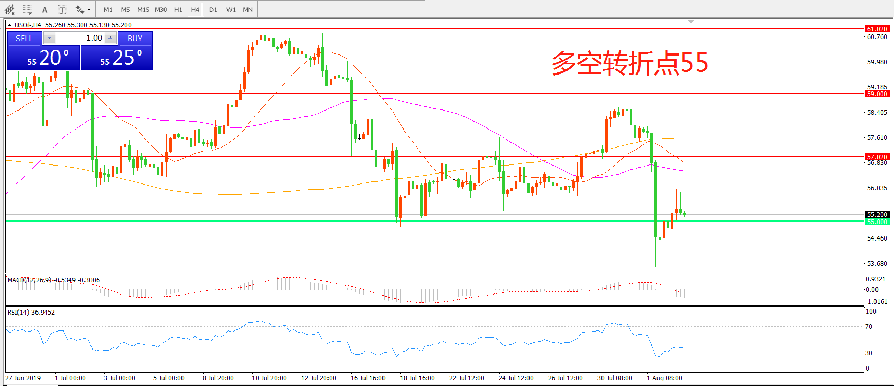 多空转折点:55.00