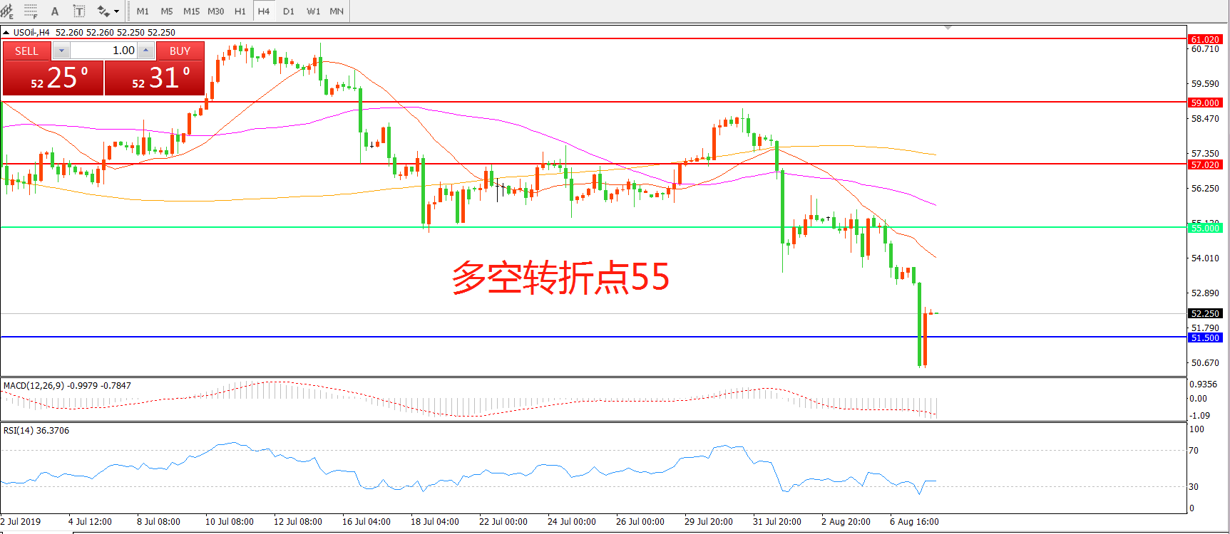 多空转折点:55.00