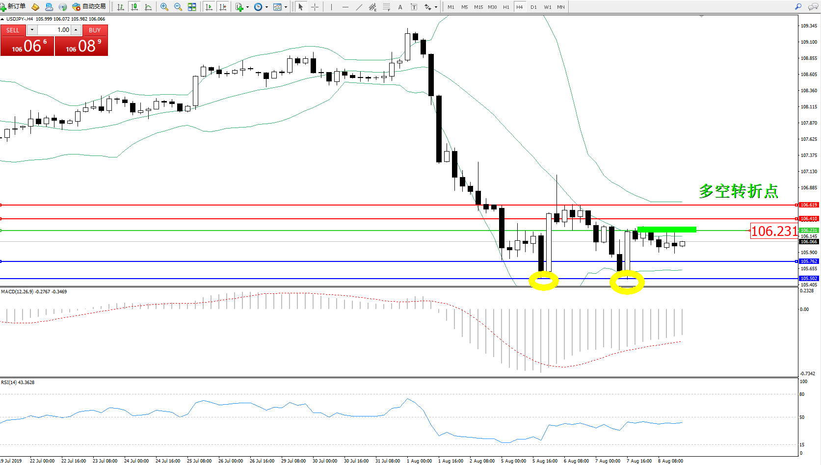 多空转折点:106.231