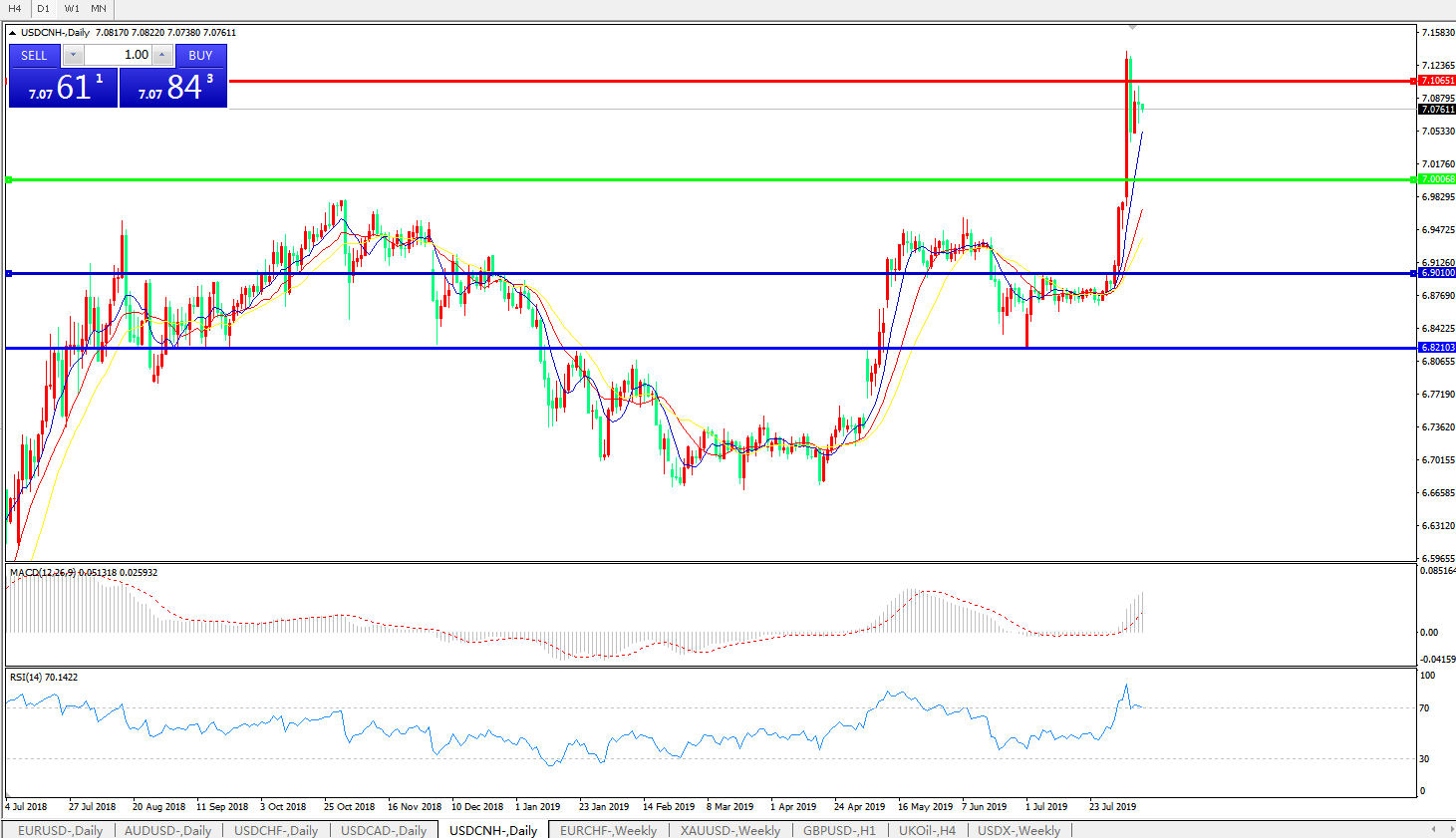美元兑人民币USDCNH   日线图: