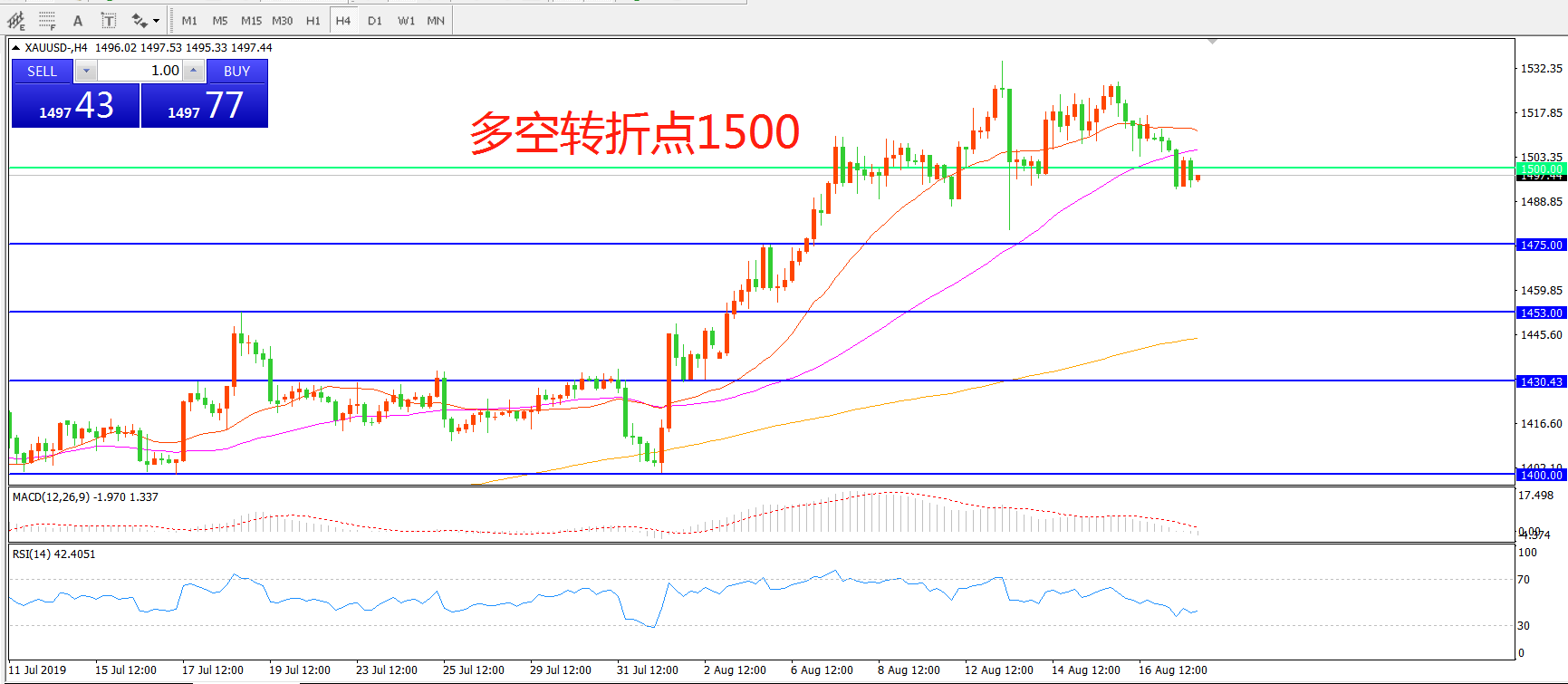 多空转折点:1500.00