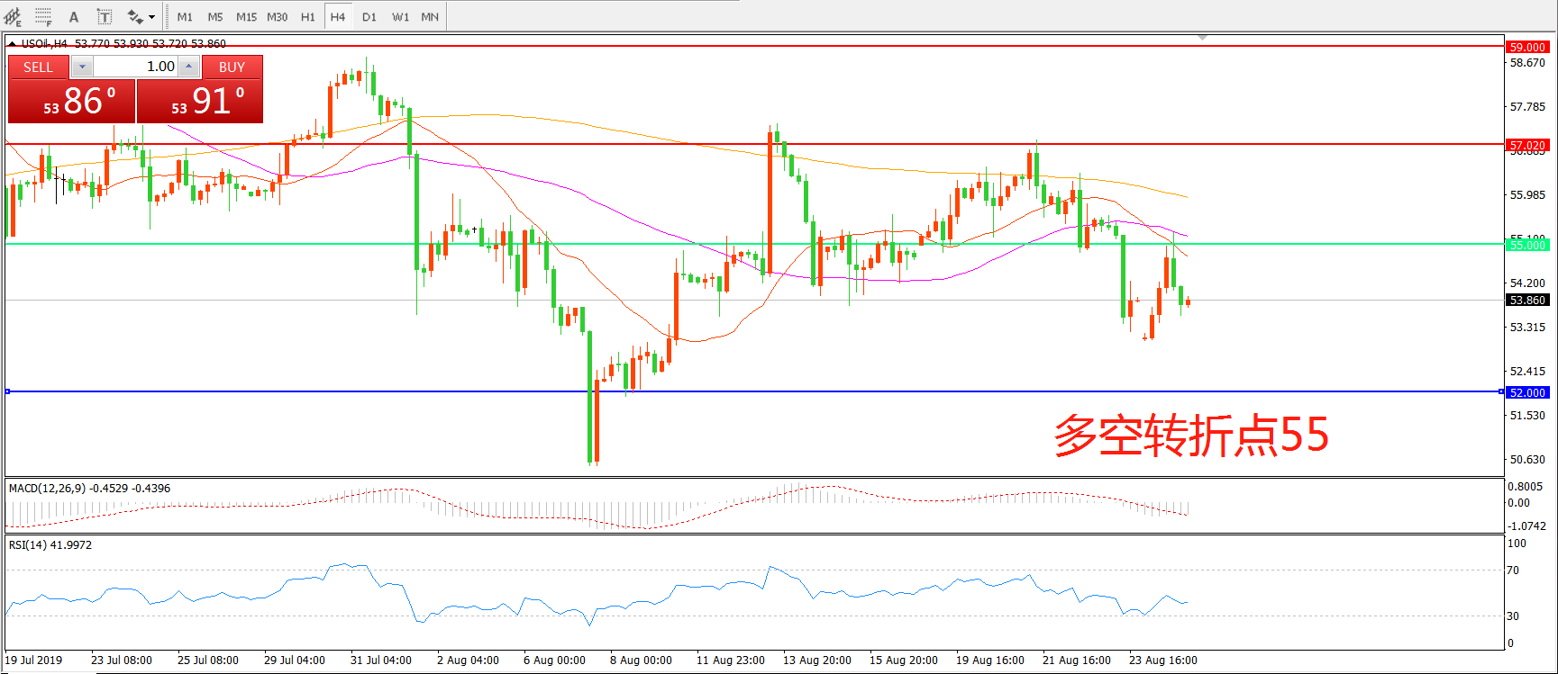 交易策略:在55.00之下看跌,目标51.50   49.00