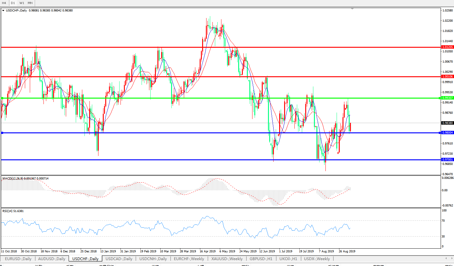 美元瑞郎USDCHF   日线图: