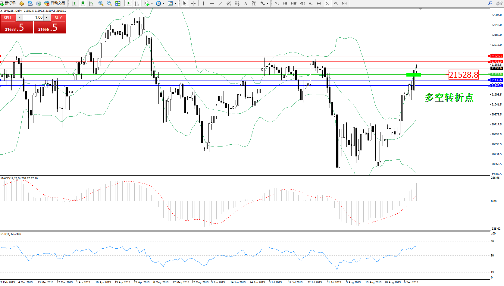 技术点评:多头上移走势明显,处于强势拉升中,延续布林带指标上轨不断走强,且未有止步迹象,前期高位破位在即,MACD指标多头区域处于强势拉升中,RSI指标多头区域上扬走势明显;