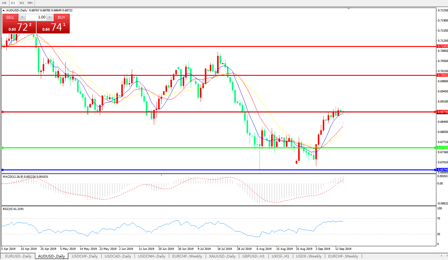 澳元兑美元AUDUSD 日线图: