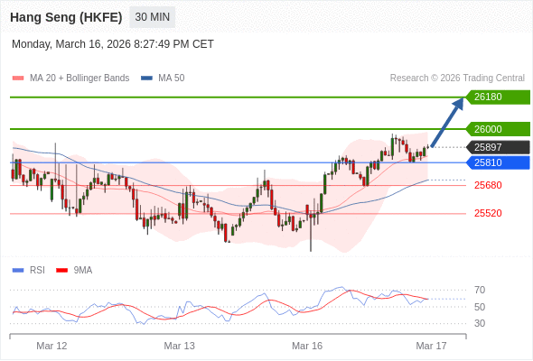 在 25810 之上,看涨,目标价位为 26000 ,然后为 26180 。