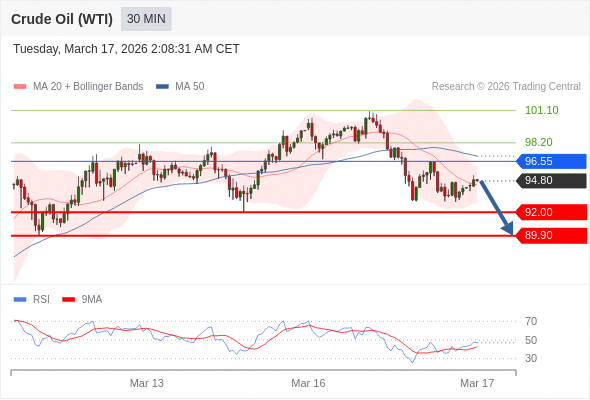 交易策略: 在 96.55 之下,看跌,目标价位为 92.00 ,然后为 89.90 。