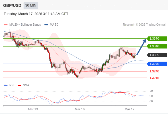 在 1.3270 之上,看涨,目标价位为 1.3340 ,然后为 1.3370 。