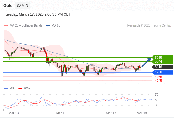 在 4988 之上,看涨,目标价位为 5044 ,然后为 5065 。
