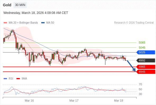在 5025 之下,看跌,目标价位为 4965 ,然后为 4945 。