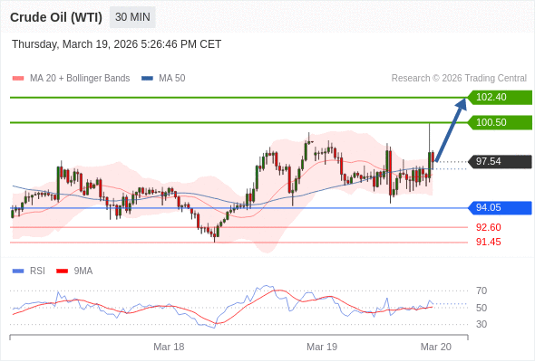 在 94.05 之上,看涨,目标价位为 100.50 ,然后为 102.40 。