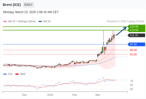 交易策略: 在 97.00 之上,看涨,目标价位为 119.50 ,然后为 125.00 。
