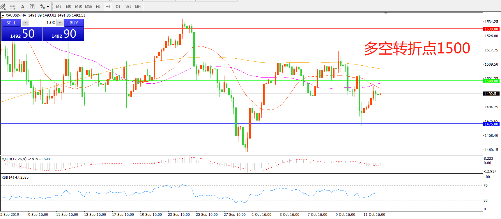 多空转折点:1500.00