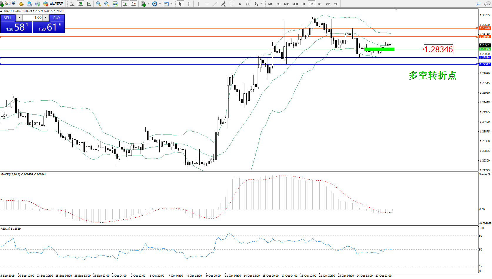 交易策略:1.28346上方看涨,目标1.29016、1.29478