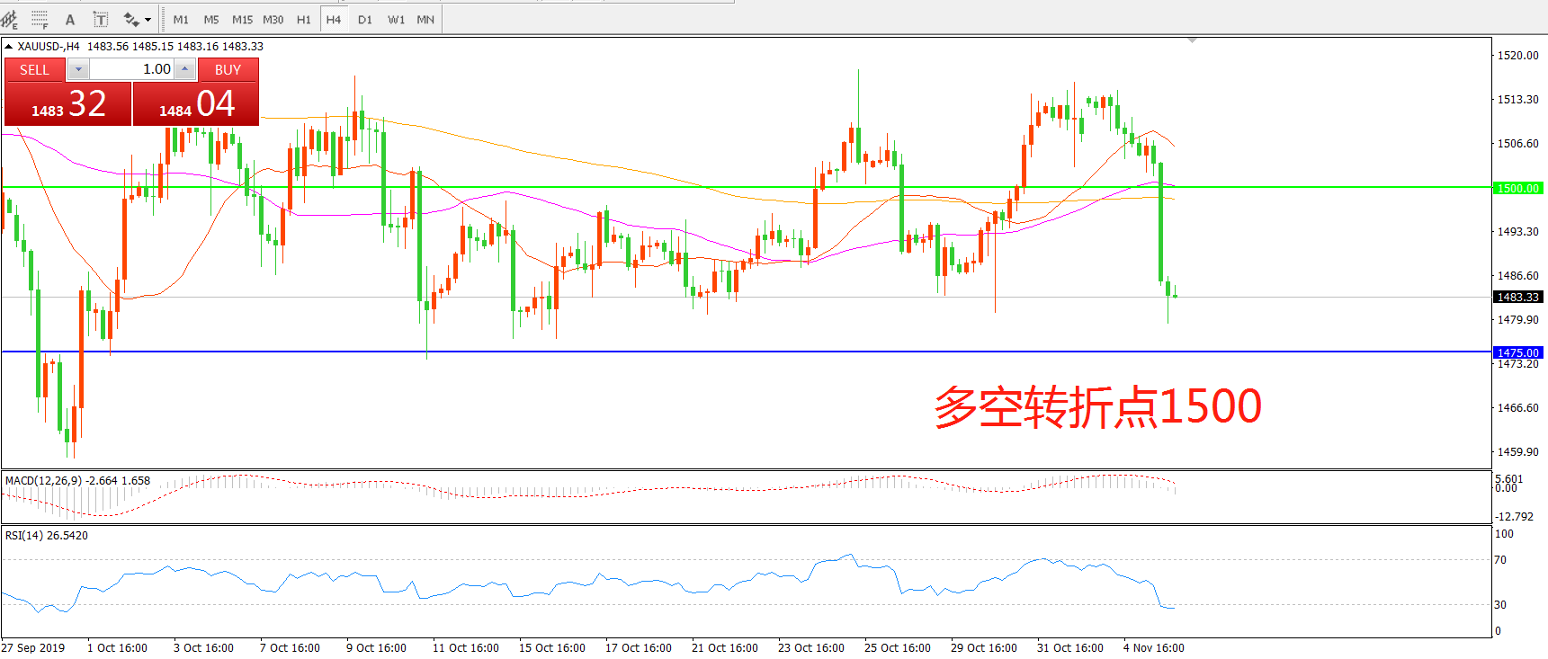 多空转折点:1500.00