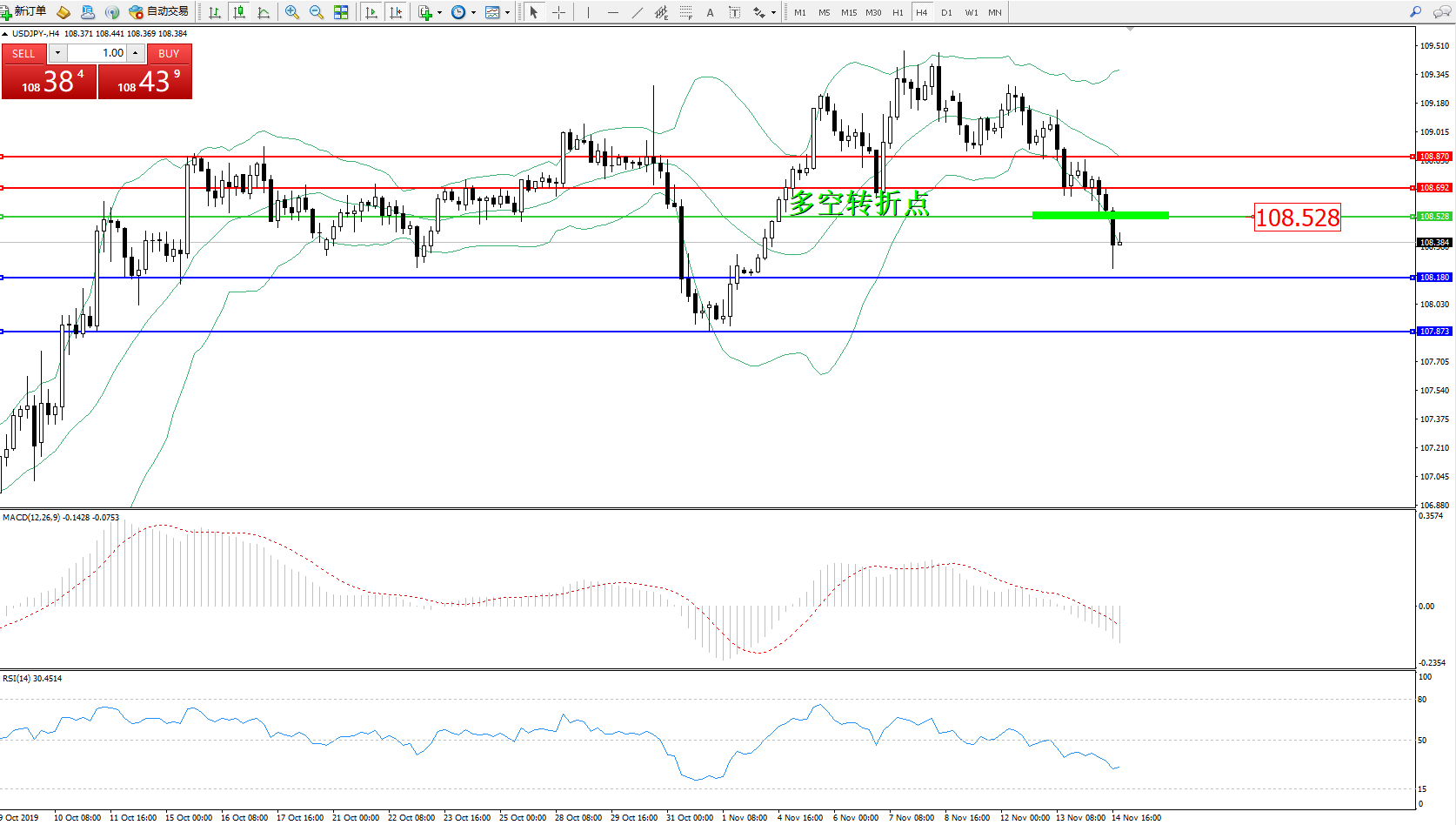 美元兑日元跌0.37%108.42,创1031日以来最大跌幅;由于贸易谈判的不确定性以及来自亚洲的经济数据惨淡,投资者转向避险资产,避险货币日元再度走强,日元兑美元连续第五个交易日上涨,为5月份以来的最长连涨纪录。日本将第二季度GDP年率从1.3%上修至1.8%,部分抵消了第三季度季率放缓至0.2%的利空影响。