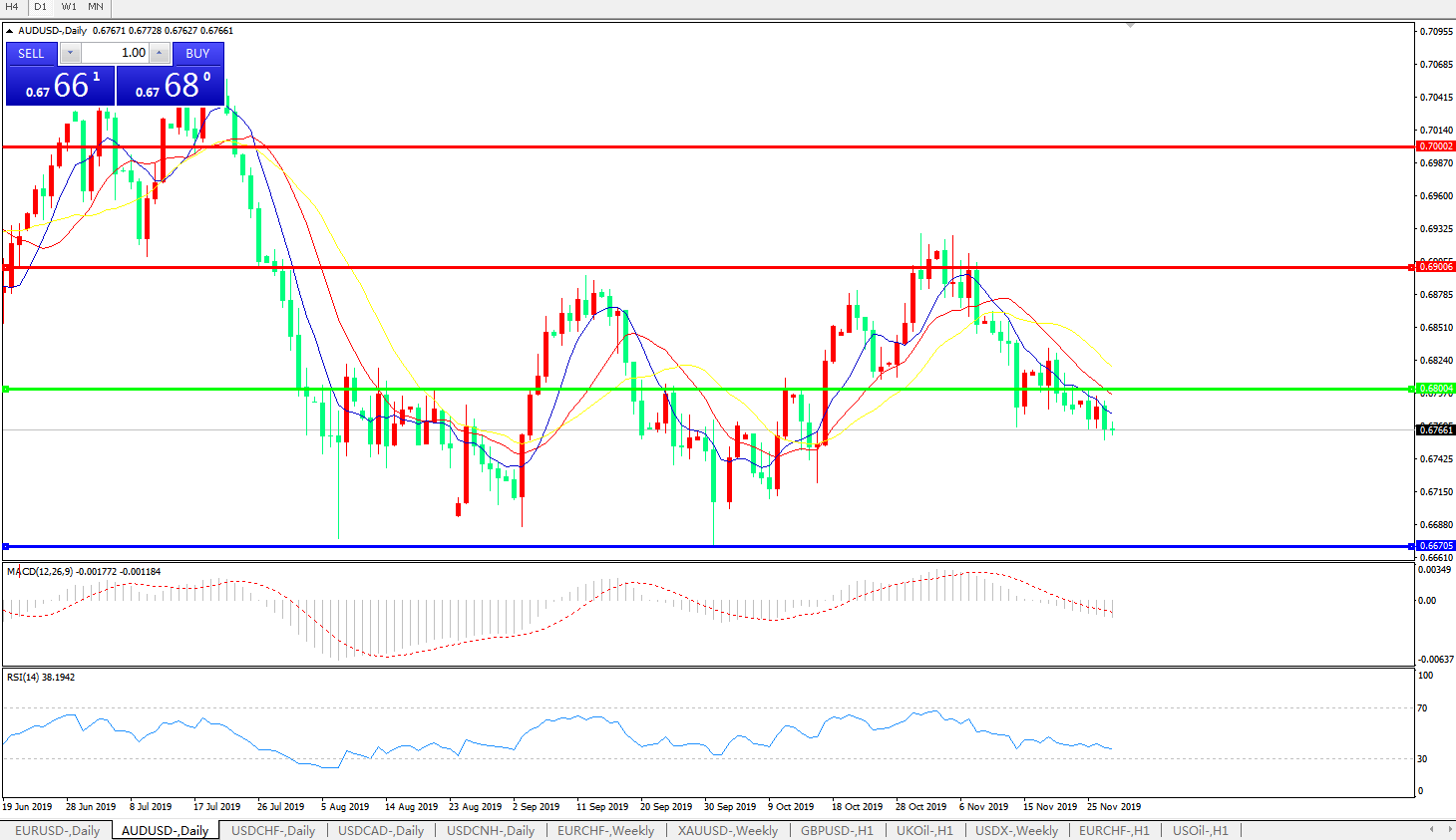 支撑位:0.6670 0.6600