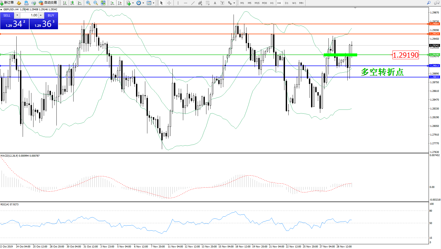 交易策略:1.29190上方看涨,目标1.29524、1.29684