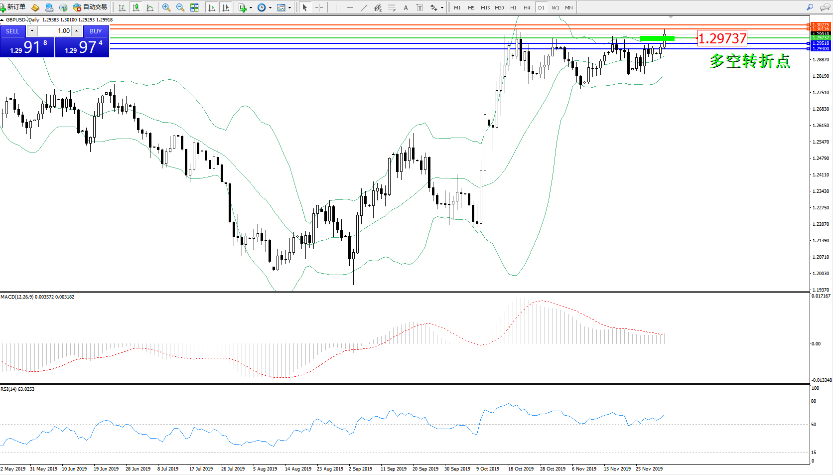 交易策略:1.29737上方看涨,目标1.301161.30275