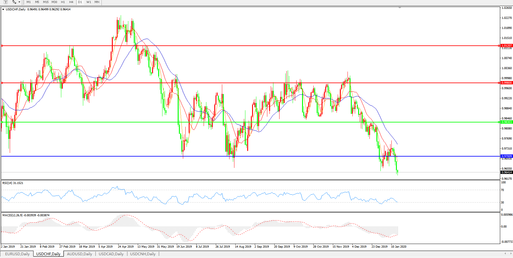 美元兑瑞郎USDCHF 日线图: