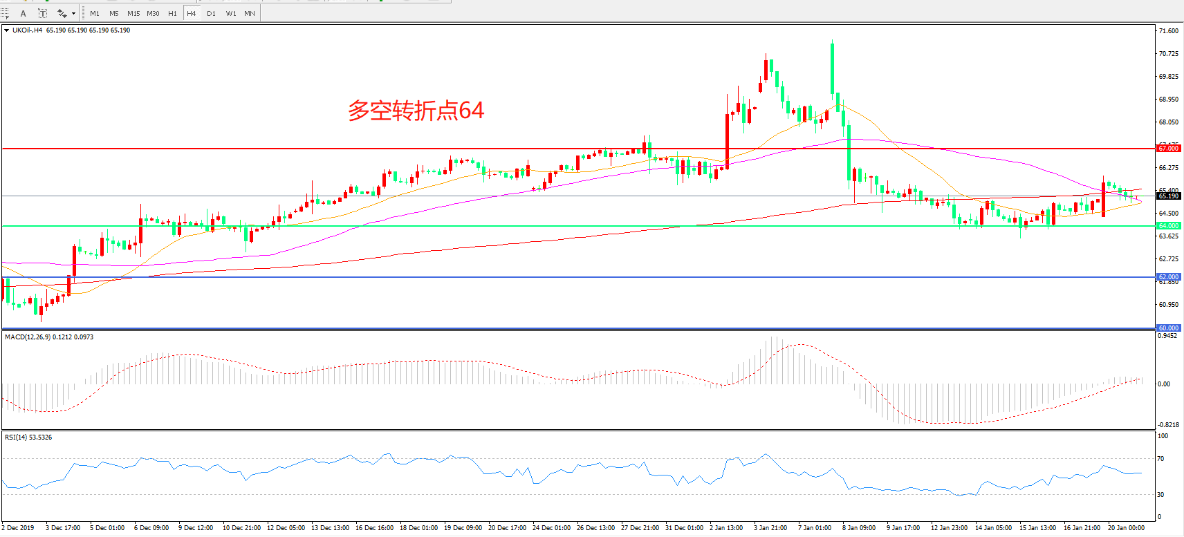 周一(1月20日),利比亚国家石油公司称,位于该国西南部的最大油田和一处重要油田周日停产,此前利比亚两个大型原油生产基地因军事封锁而关闭,布伦特原油跳空高开后小幅回落,最终收报65.18美元/桶。瑞银集团在一份研究报告中称,石油输出国组织(OPEC)及俄罗斯等非OPEC产油国有望将现有的减产期限从2020年3月底延长至2020年底。