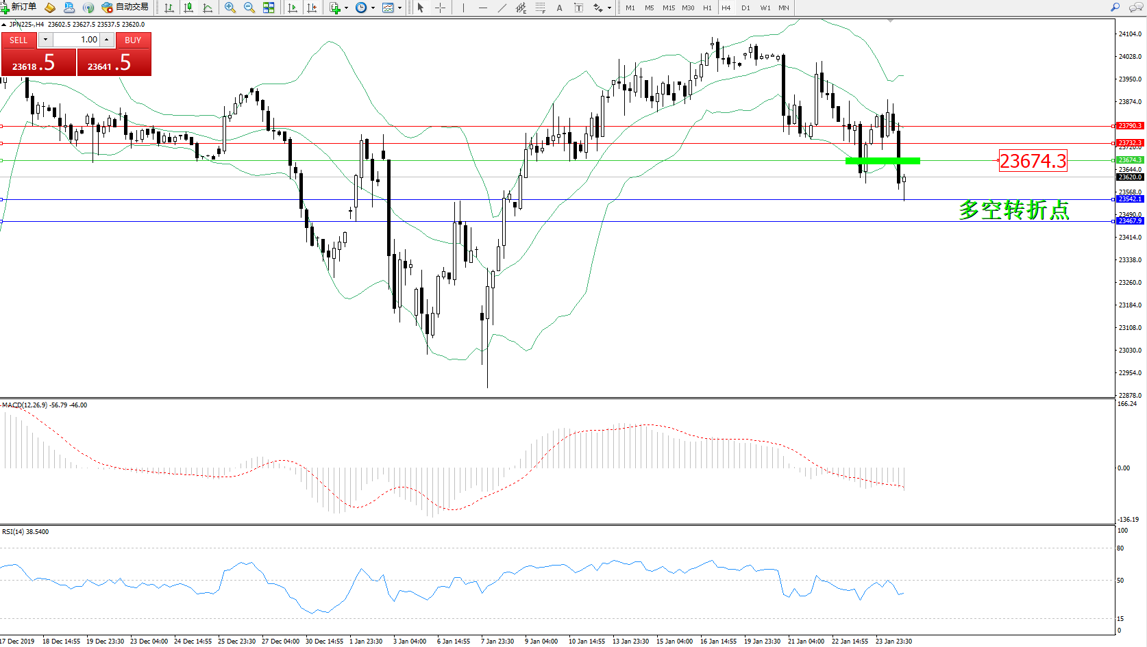 交易策略:23674下方看跌,目标23542、23467