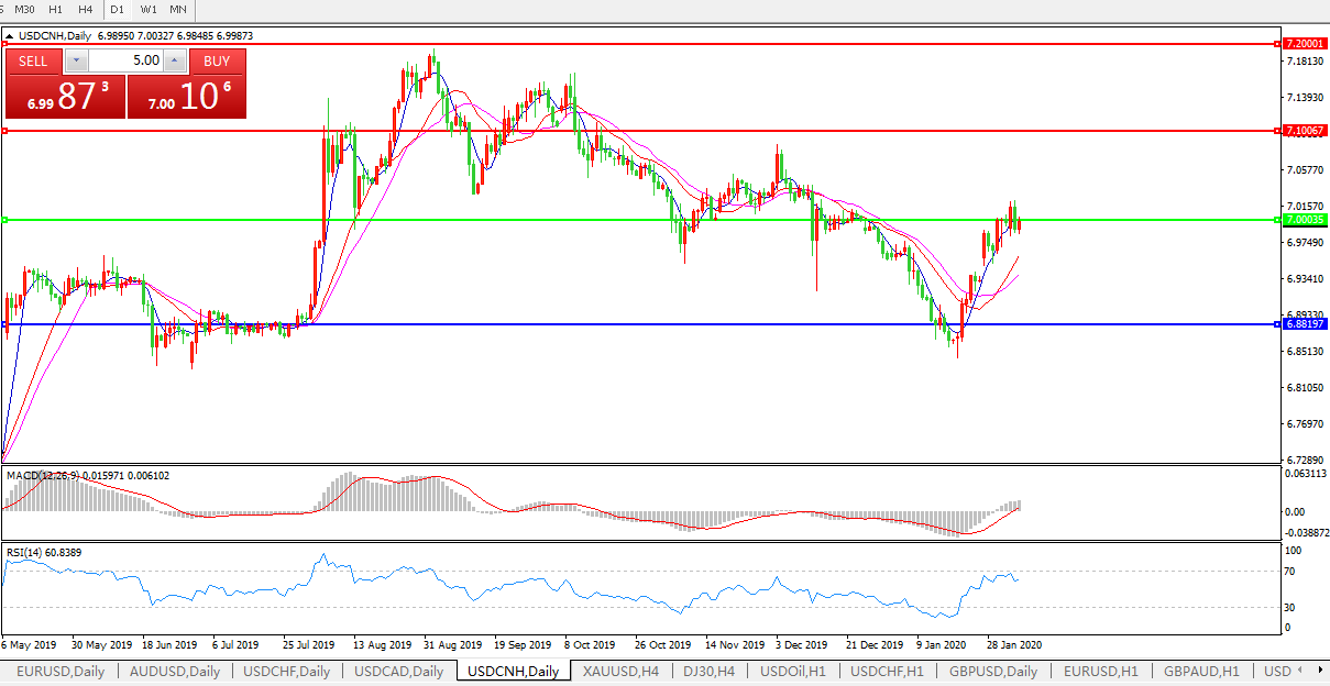 交易策略: 在7.0000之上,看涨,目标价位为7.1000,然后为7.2000。
