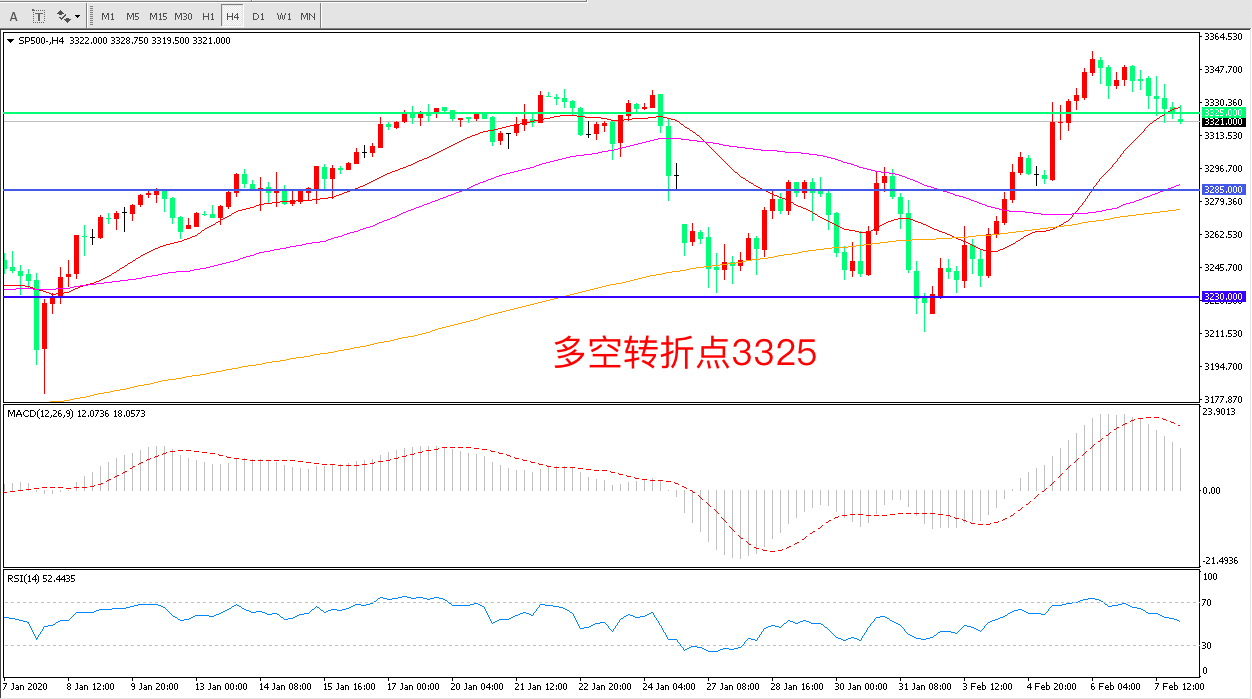 上周,美股在四连涨后,暂缓上行步伐,标普500冲高回落,收报3326.75点。此前美国公布1月非农数据,22.5万的数据表现超过市场预期,但新冠病毒事件的影响抵消了数据的利好。
