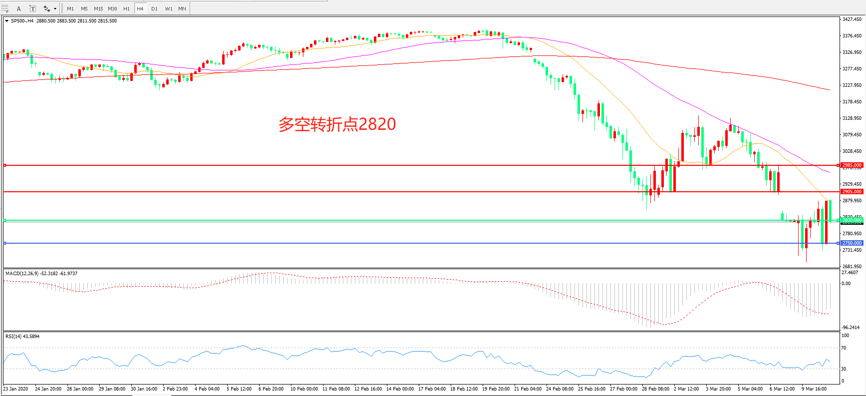 多空转折点:2820.00