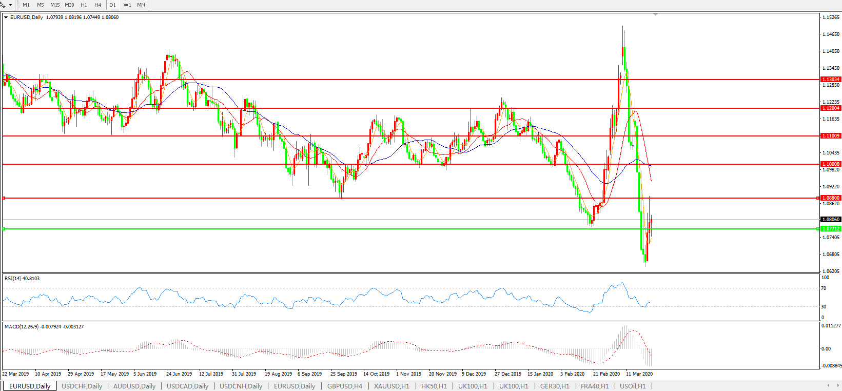欧元兑美元EURUSD 日线图: