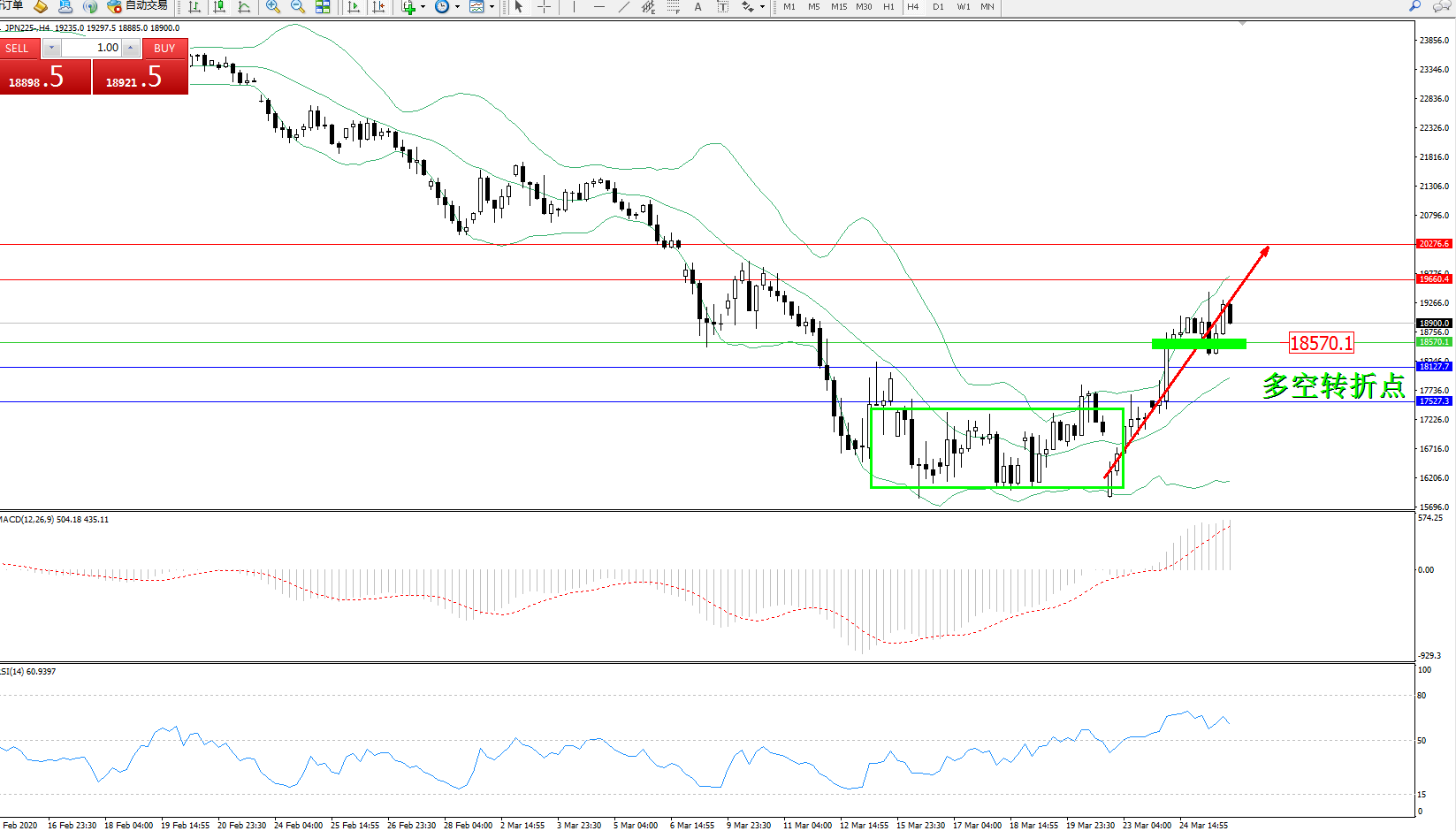 日经225指数3月25日(周三)收盘上涨1470.00点,涨幅8.13%,报19547.50点。美国国会接近就2万亿美元经济刺激方案达成协议提振市场风险情绪,隔夜欧美股市大涨,道指更是暴力拉升逾11%,稍早日本央行公布了3月16日货币政策会议委员意见摘要,必须加强货币宽松以阻止企业和家庭信心的恶化。该到政府支持经济的时候了,鉴于新冠病毒在全球范围内的传播,其对日本经济的影响可能是长期和巨大的,考虑到欧美国家的新冠病毒可能造成的巨大影响,即使海外经济复苏,日本经济也可能继续停滞不前。此外日本央行在未来提供2万亿日元的政府证券回购和提供4千亿日元的政府证券回购。