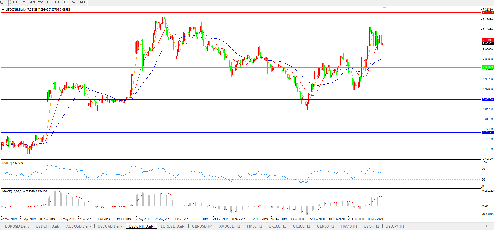 交易策略: 在7.0000之上,看涨,目标价位为7.1000,然后为7.2000。