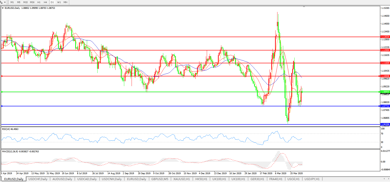 欧元兑美元EURUSD 日线图: