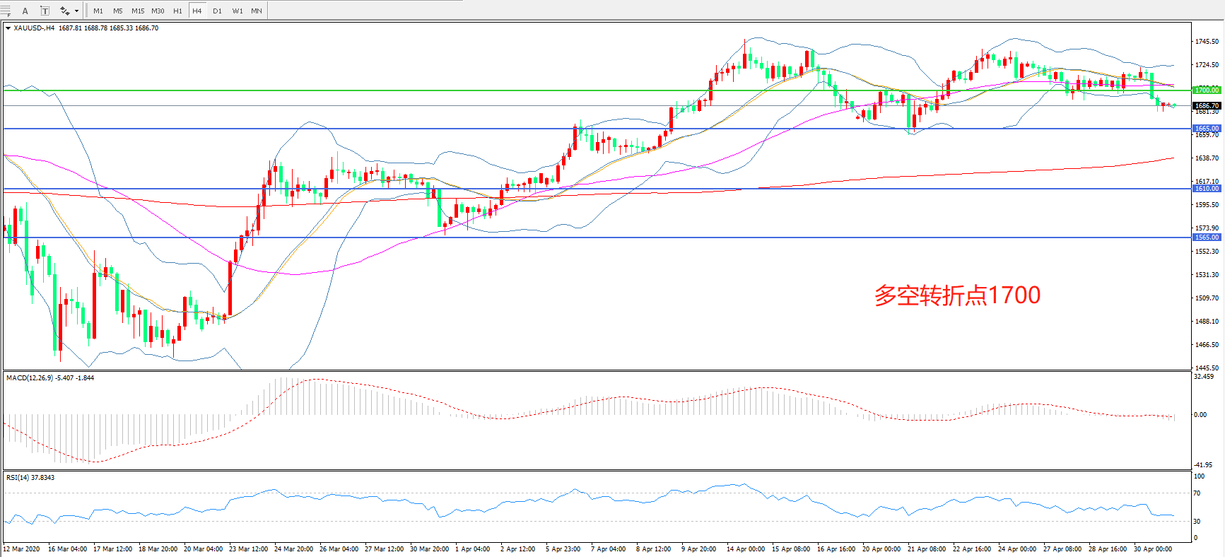 交易策略:  在1700.00 之下看跌,目标1665.00   1610.00