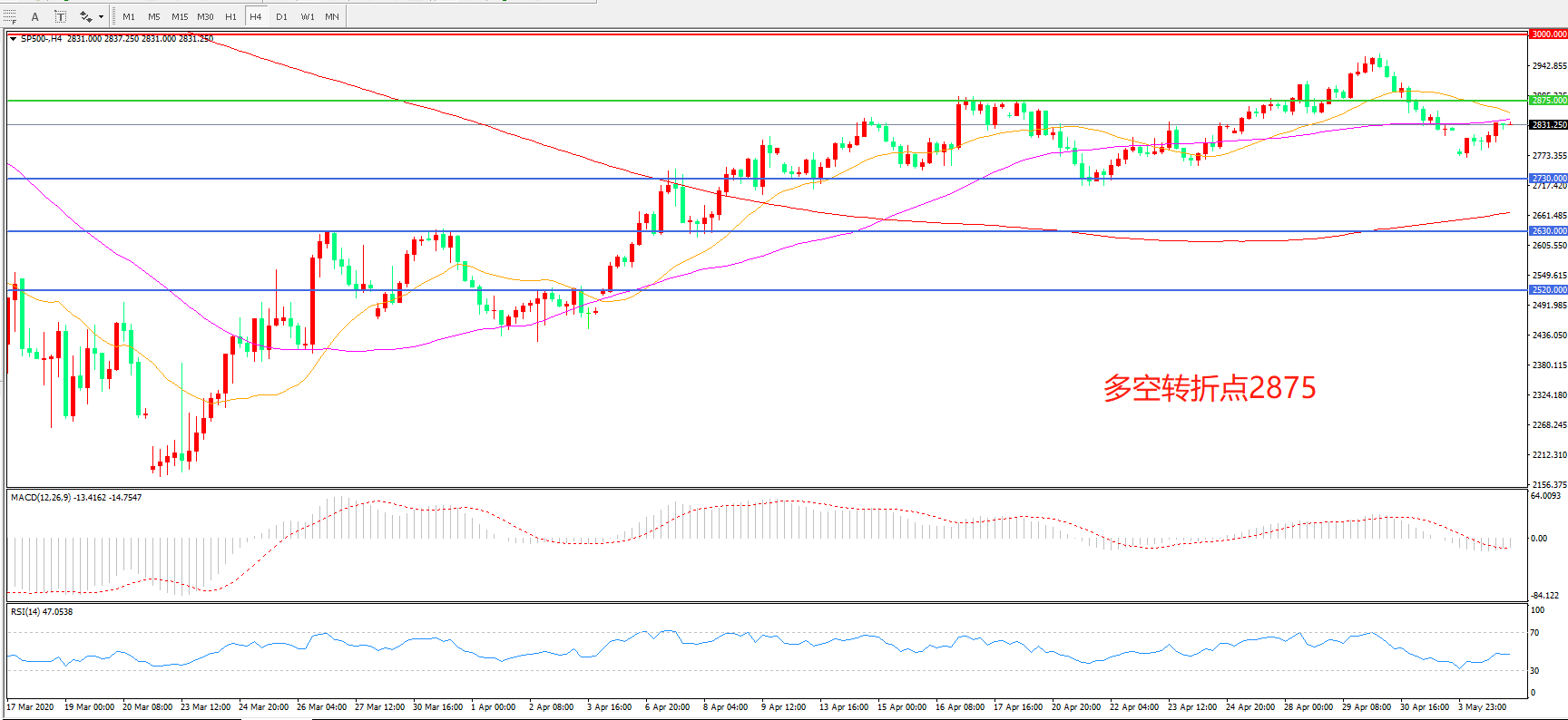 多空转折点:2875.00