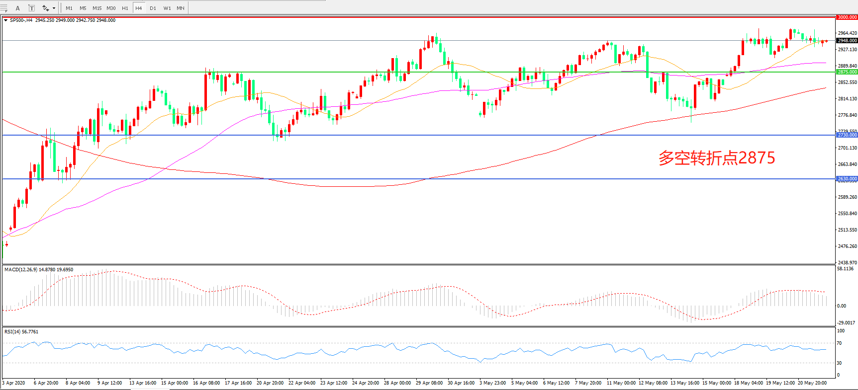 周四(5月21日),美国国会通过海外公司上市监管的议案引发了市场对中美摩擦的担忧,挫伤了投资者拥抱风险资产的情绪标普500震荡下行,收报2944点。日内美联储主席鲍威尔发言认为,美国经济从目前严重衰退中复苏道路的努力面临着“全新水平的不确定性”,能否成功地恢复经济将在很大程度上取决于,公众对于解除居家隔离令不会引起疫情二次爆发的信心。