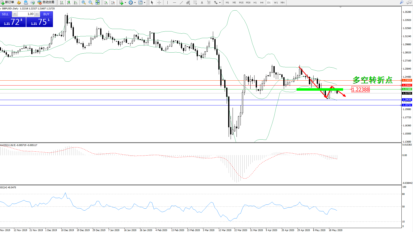 交易策略:1.22388下方看跌,目标1.206301.19731