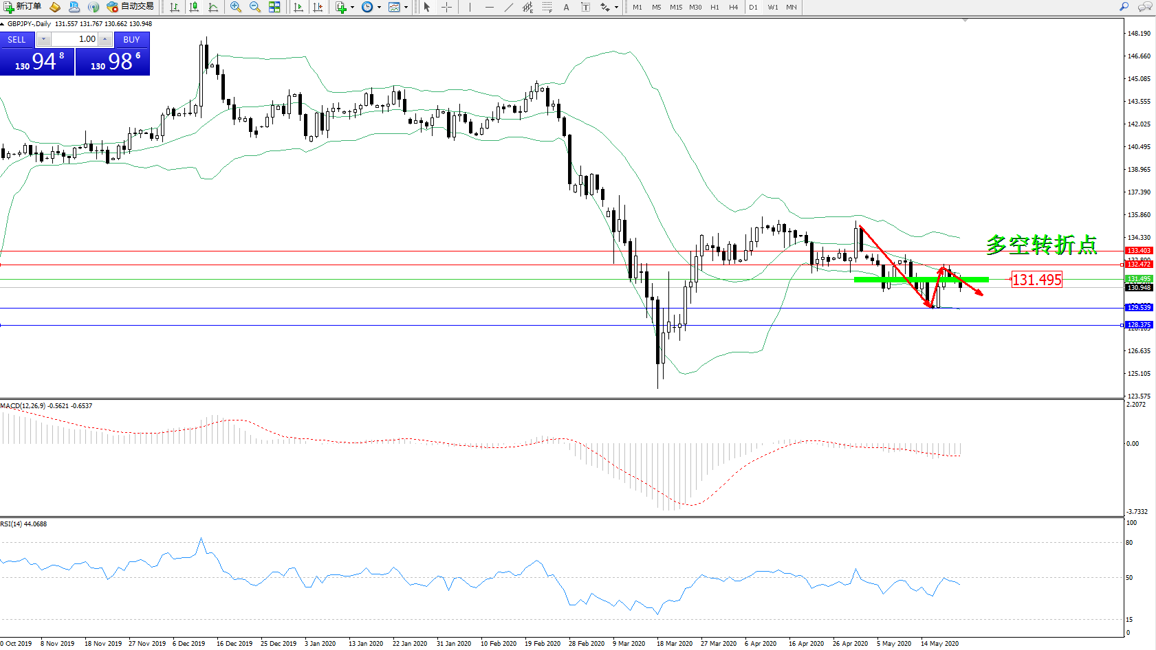 多空转折点:131.495