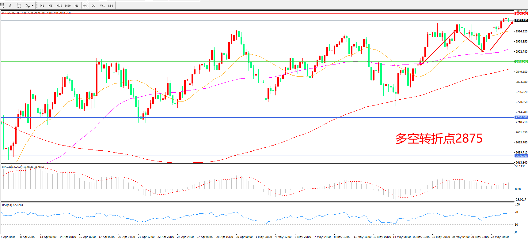 多空转折点:2875.00