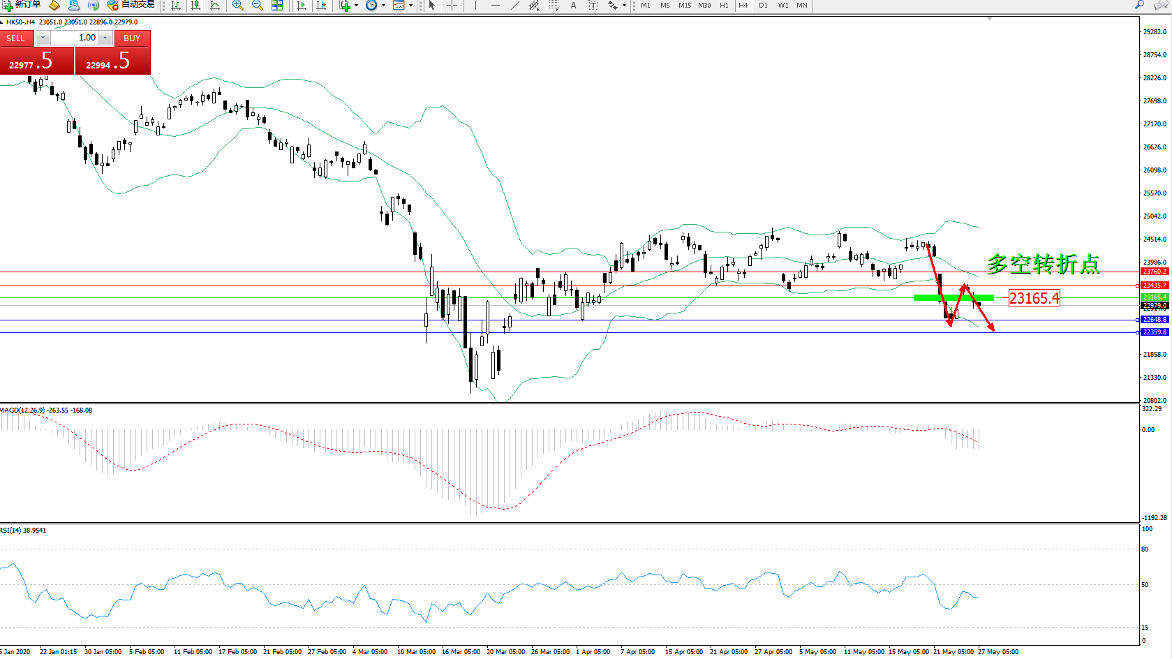 香港恒生指数5月27日(周三)收盘下跌83.3点,跌幅0.36%,报23301.36点;港股三大指数全日表现疲弱,盘中均跌逾1%。南下资金逆势流入15.98亿港元,大市成交额为1108.82港元。药品股强势,石药集团首季利润增长21.8%,午后拉升大幅收涨6.68%;美国正准备就中国的“港区国安法”做出强力回应,将于周末前宣布。对此,外交部发言人赵立坚表示,香港是中国的特别行政区,维护国家安全历来是中央事权。香港特区维护国家安全立法问题,纯属中国内政,不容任何外来干涉。对于外部势力干预香港事务的错误行径,我们将采取必要措施予以反制。