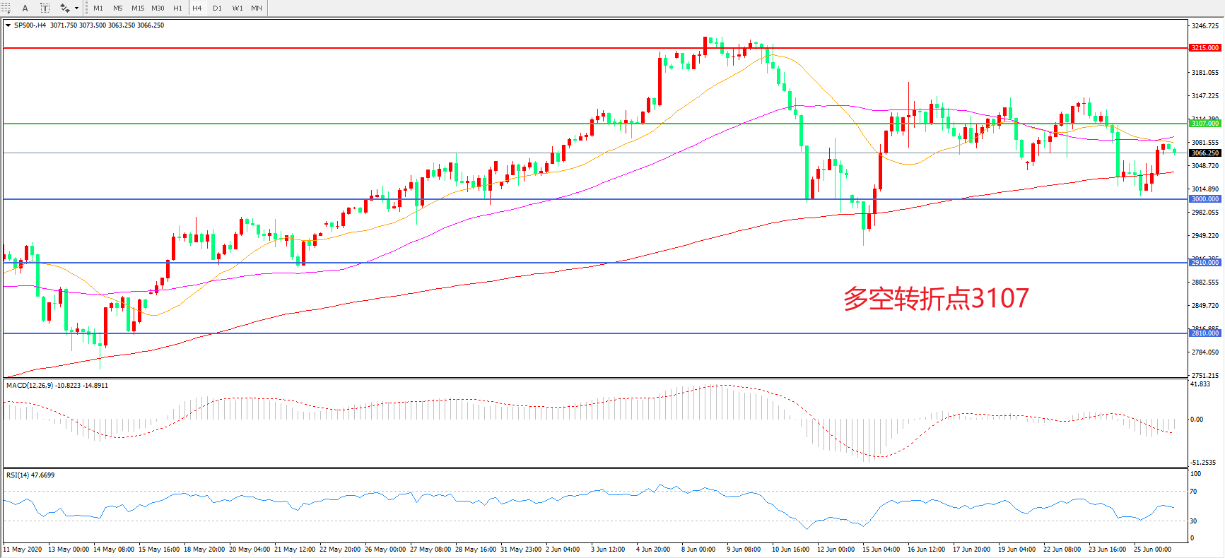 周四(6月25日),美联储、美国货币监理署和联邦存款保险公司批准了对沃尔克规则的修改,允许银行增加对风险投资基金的投资,股市受到提振,标普500震荡反弹,收报3076.50点。但IMF警告金融市场与实体经济已脱节,而美国多个州疫情反弹,将令股市走势持续反覆。