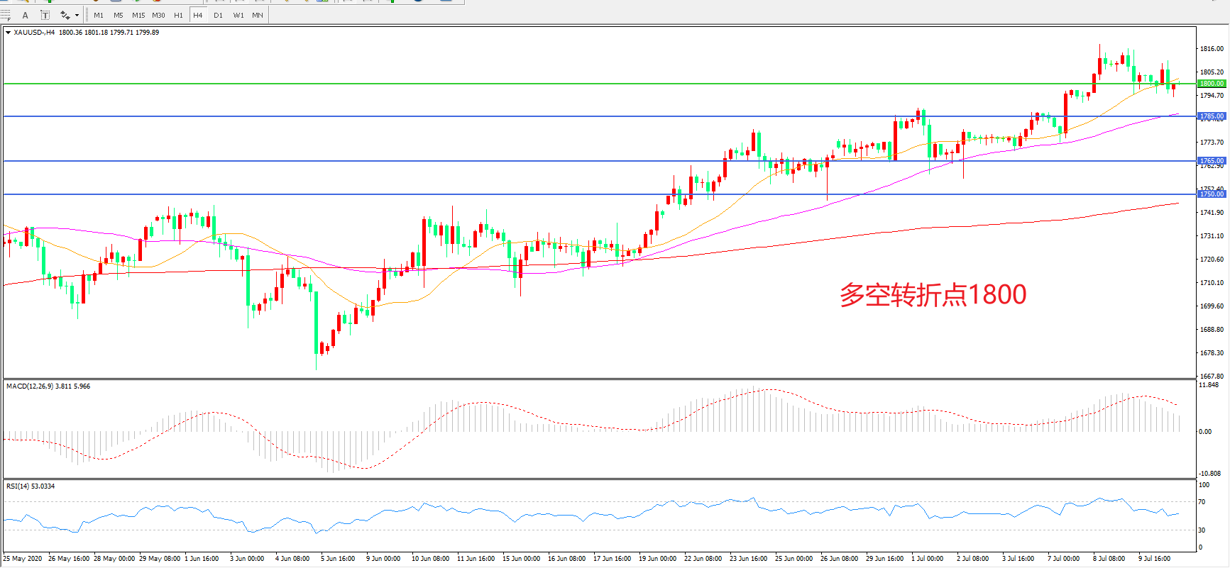 多空转折点:1800.00