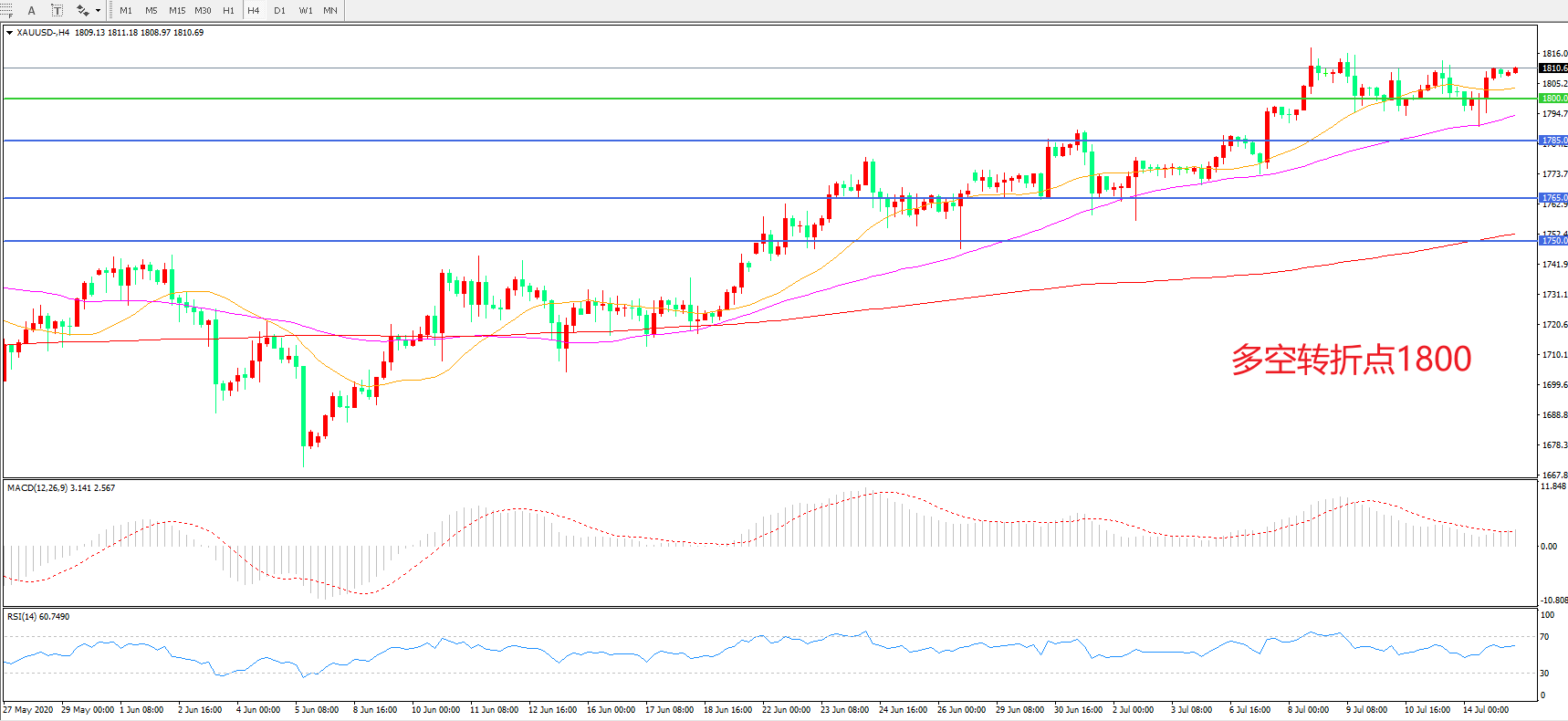 多空转折点:1800.00