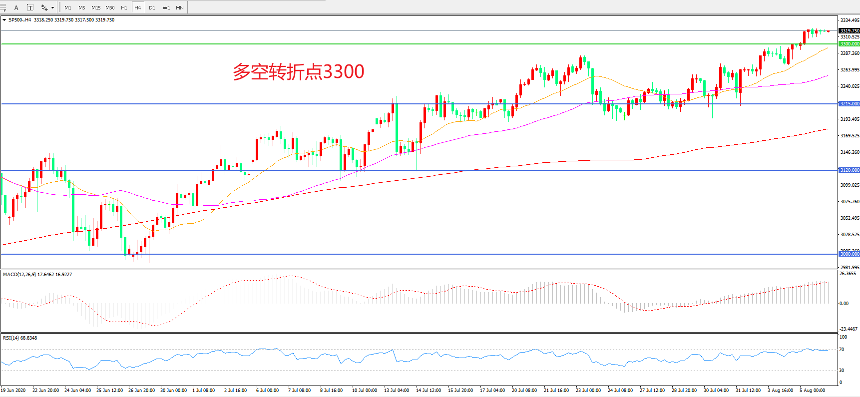 多空转折点:3300.00