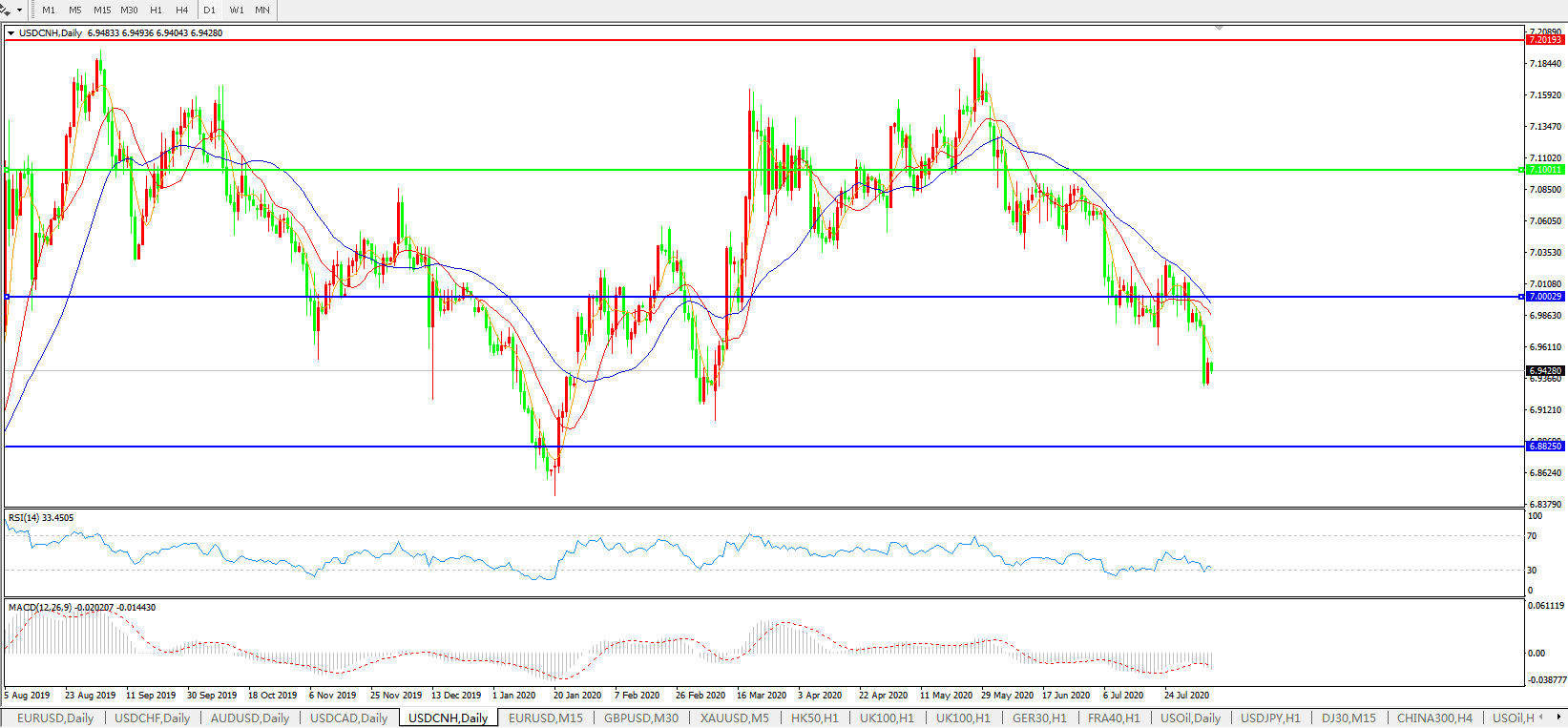 交易策略: 在7.1000之下,看跌,目标价位为7.0000,然后为6.8820。