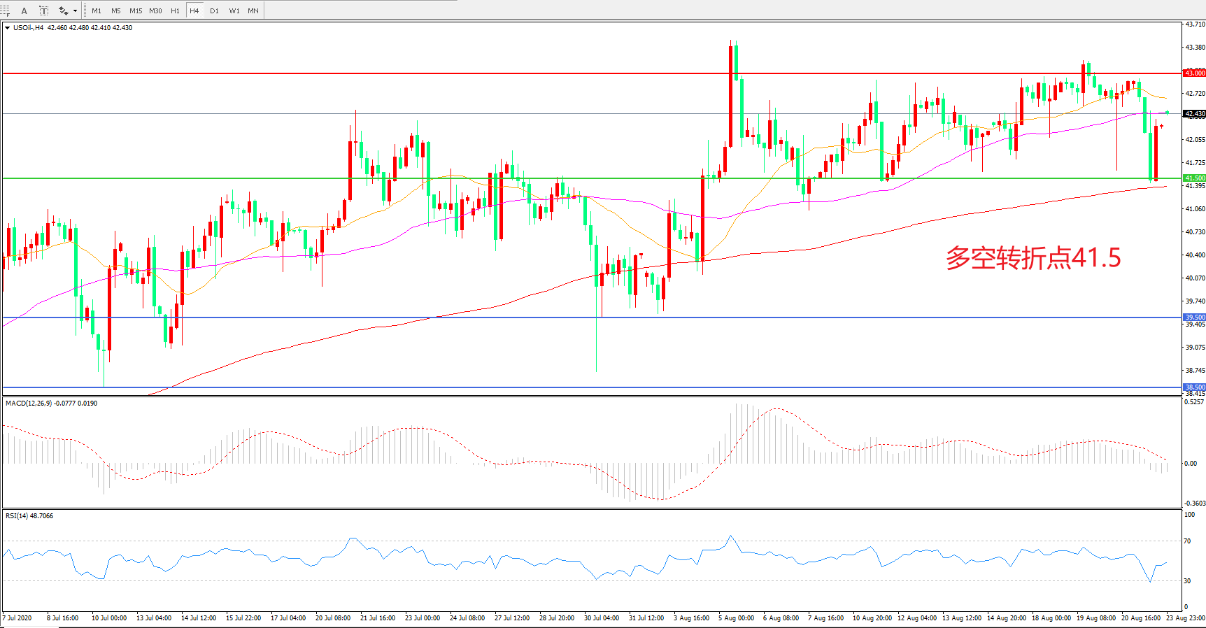 交易策略:在41.50之上看涨,目标43.00 46.00