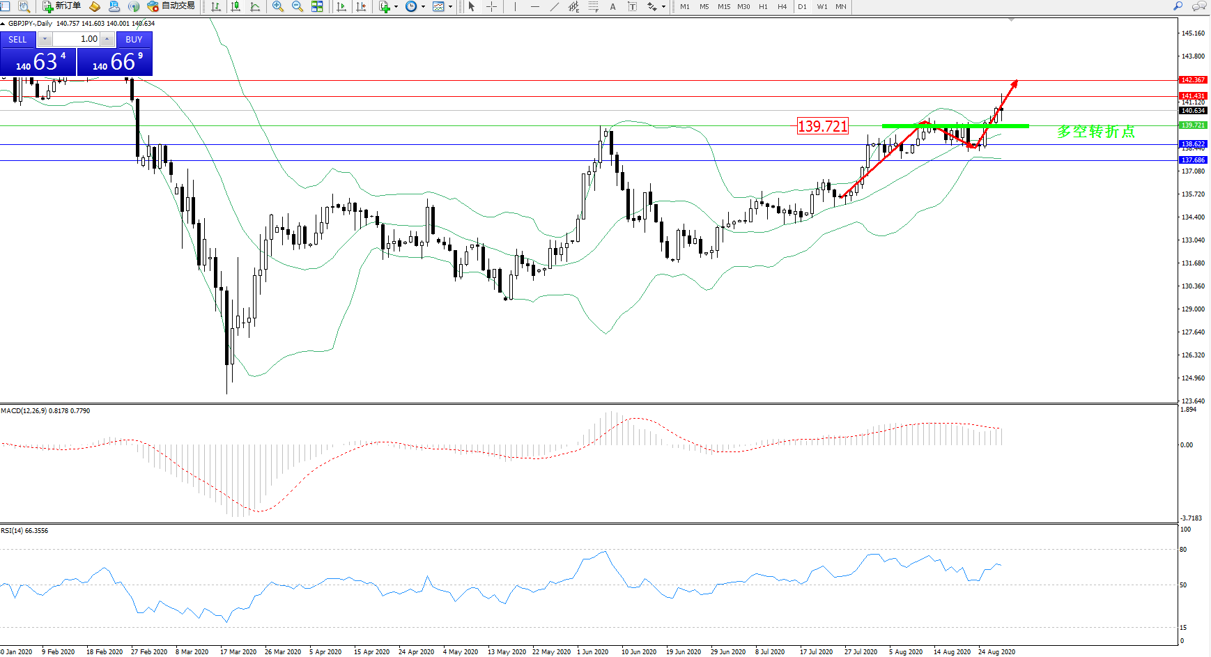 交易策略:139.721上方看涨,目标141.431、142.367