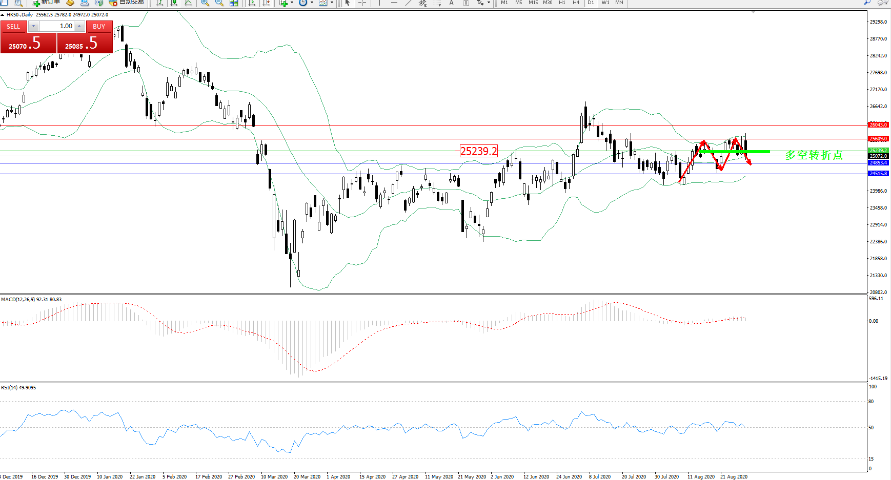 恒指HK50 ——日K线图显示: